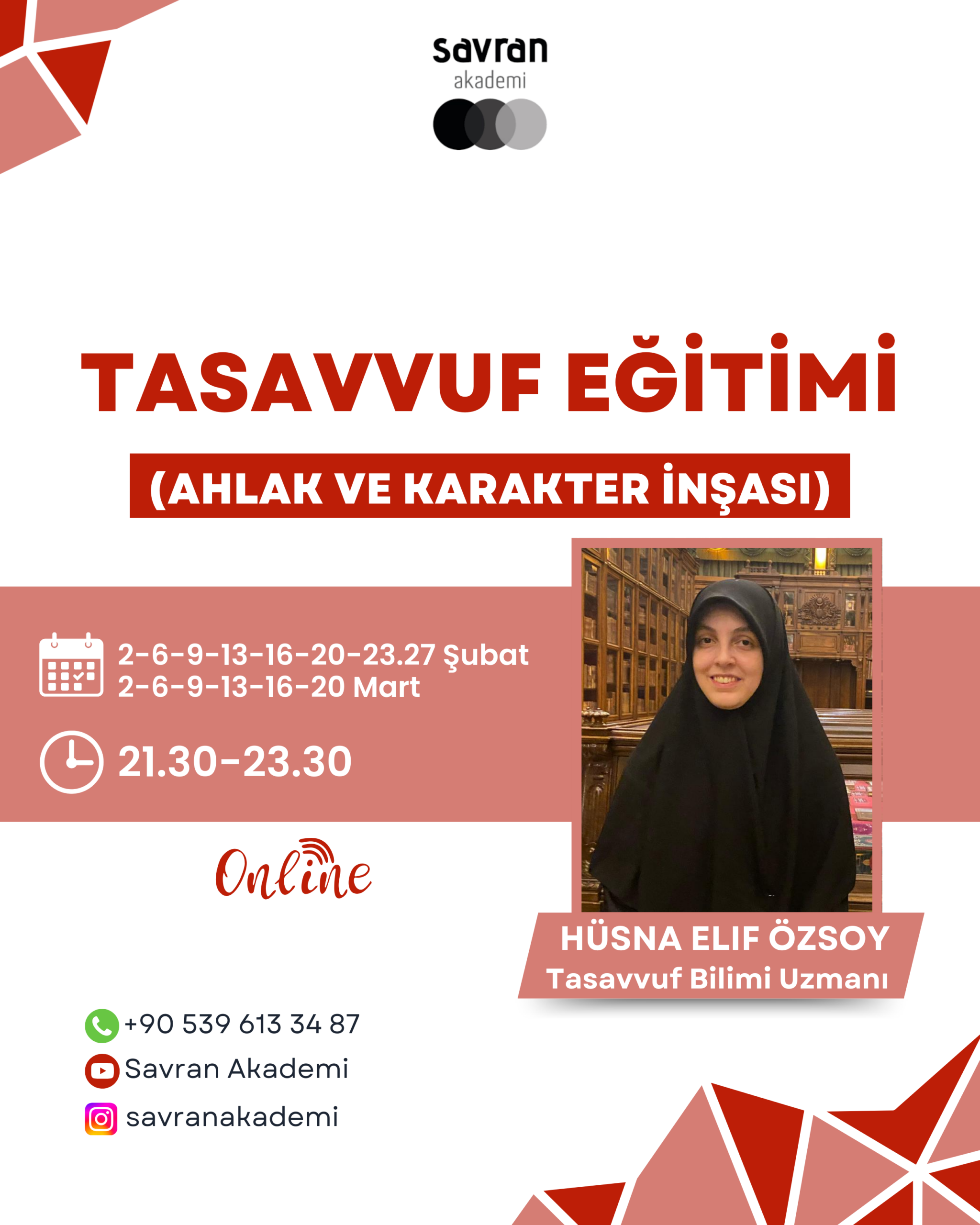 👉🏻Tasavvuf eğitimi, sadece “bilgi” değil; gündelik hayatta ahlâkı derinleştiren ve karakteri inşa eden bir yol haritasıdır. Bu programda, tasavvufun temel kavramlarını “yaşanan hayata” tercüme ederek ele alacağız: niyet, irade, nefis terbiyesi, iç disiplin ve kalp farkındalığı.